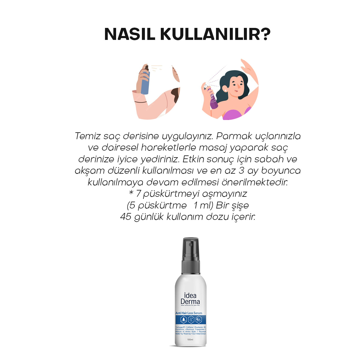 İçeriğinde bulunan aktif bileşenlerle güçlendirilen saç serumu, saç dökülmesine karşı etkili bir bakım sunmayı hedefler. Saç diplerini besleyerek daha dolgun, güçlü ve parlak saç tellerine kavuşmanıza yardımcı olur. Hafif ve yapışkan olmayan dokusuyla saç dibine kolayca nüfuz eder, hızlı emilimi sayesinde pratik bir kullanım sunar.