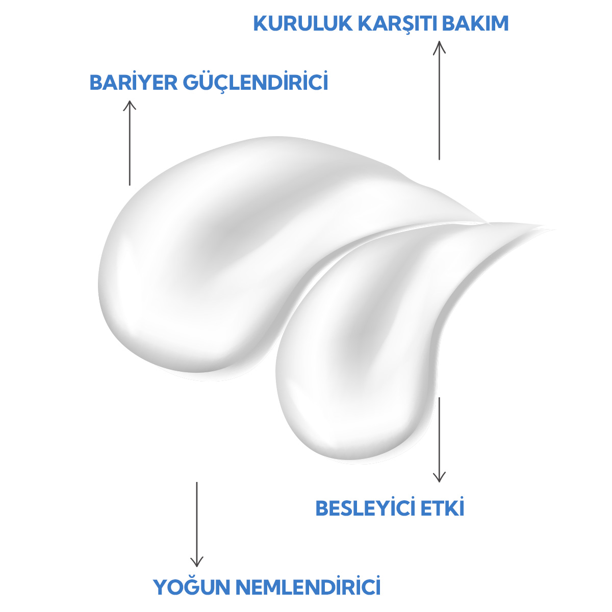 Prebiyotik, E vitamini ve Hyaluronik Asit içeren özel formülüyle, kuru ciltlerin ihtiyaç duyduğu yoğun nem ve güçlendirici bakımı bir araya getirir.Shea Butter, Squalane, Seramid ve Hyaluronik Asit içeriği sayesinde cildi derinlemesine besler, nemlendirir ve uzun süre nemli kalmasına yardımcı olur. Ciltte yumuşak, pürüzsüz bir görünüm sağlar. Günlük kullanımda nem kaybını önlemeye destek olur. Kuru ciltler için özel olarak geliştirilmiştir