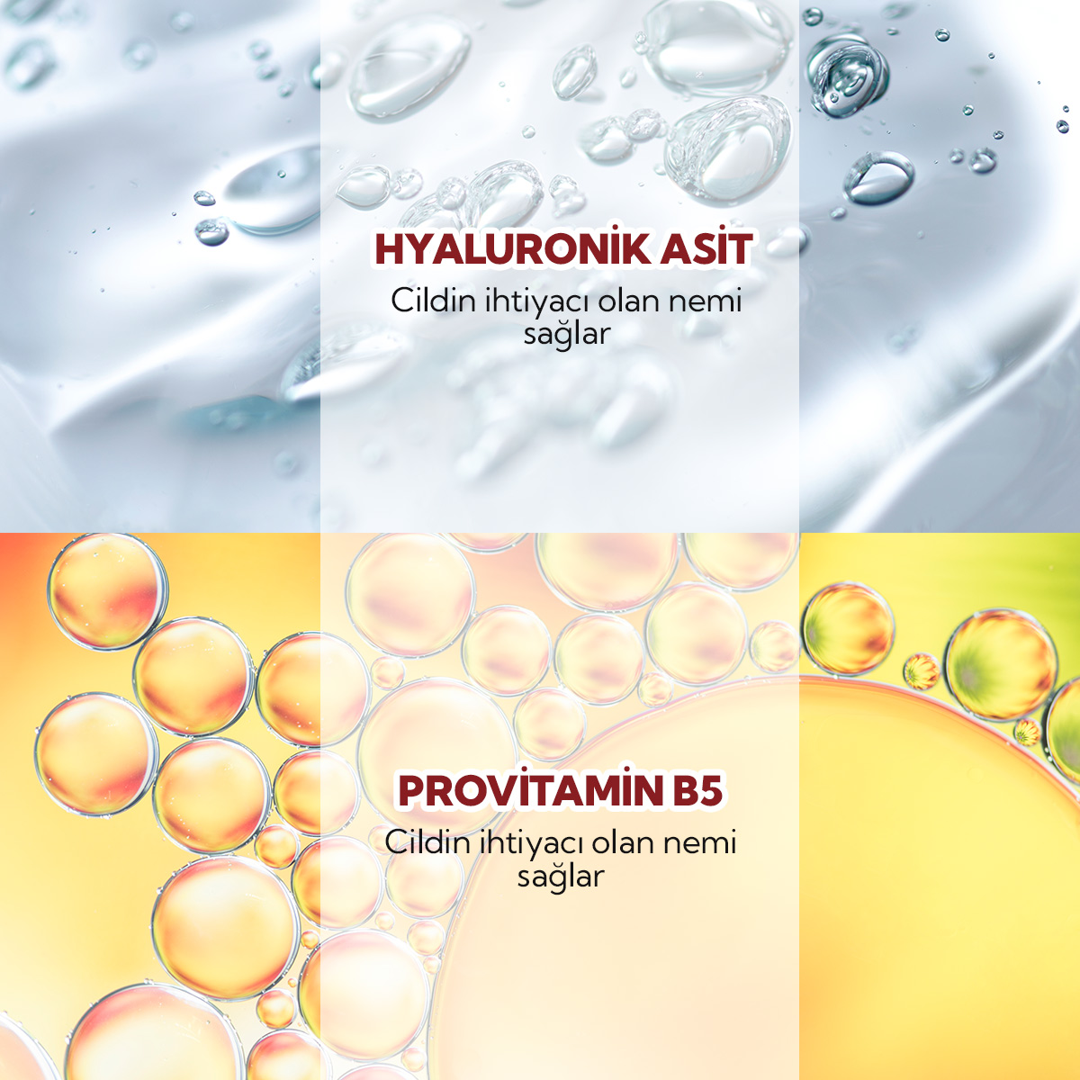 Provitamin B5 ve hyaluronik asit ile cildi nemlendirir. Yağlı his bırakmadan hızla emilir.